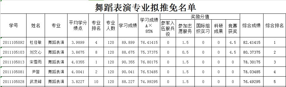 二、各专业名额:社会体育指导与管理专业6名;舞蹈表演专业5名