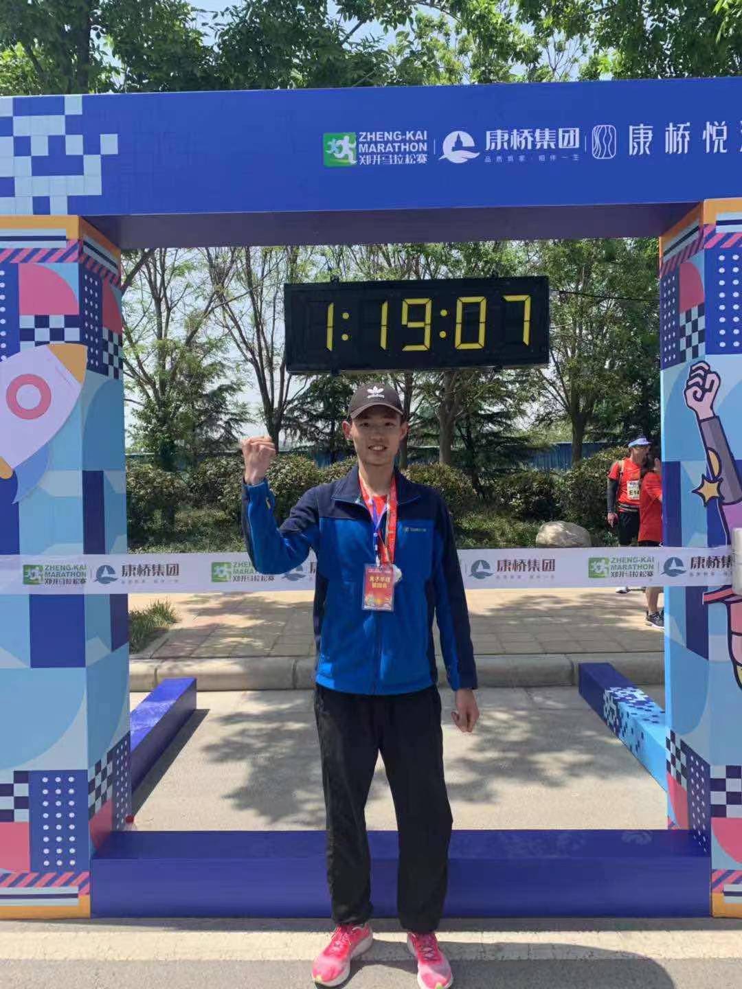 嘟嘟成人网 大四学生吕坤赛前积极准备,向老师请教怎么安排体能分配、配速及饮食等注意事项,在竞争激烈的比赛中取得男子组半马第四的优异成绩,成绩79分钟左右(成绩以裁判组官方确认)。