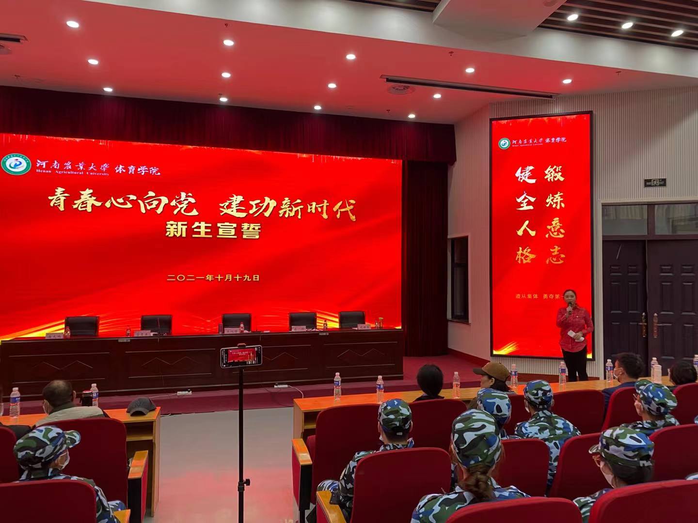 院党委书记吴旭静发表讲话。她表示,今年是极其不平凡的一年,也是同学们人生经历中最难忘的一年。面对水灾疫情,同学们克服重重困难,顺利迈入大学校门,充分体现了同学们的勇气、坚强、毅力和担当。就全体新生今后的学习生活,她提出三点希望:一是不入俗流,做一个明德修身的体育人;二是躬身学海,做一个求是力行的体育人;三是不负韶华,做一个独立思考善于协作的体育人。最后希望同学们在大学生活中收获珍贵的同学情、师生情,度过最美好的大学时光。