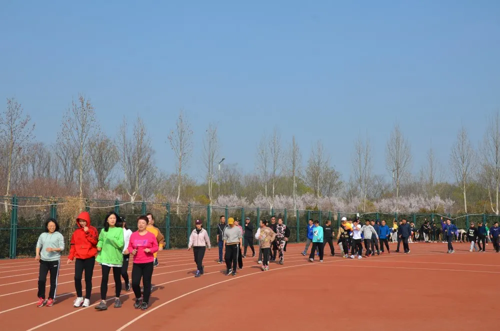 赛前,裁判员详细讲解了活动规则,带领选手们进行热身运动,保证选手们的肌肉得到充分热身,避免在比赛中受伤。随着一声清脆的哨响,参加健步走的50余名教职工迎着春风出发,一路欢歌笑语、互相鼓励、你追我赶。2.5公里的徒步路程既锻炼了身体,又增强了各位老师之间的沟通与交流。青春在那一刻仿佛又回到了他们的身上,这是意志力的比拼,是一次最绚烂的绽放!