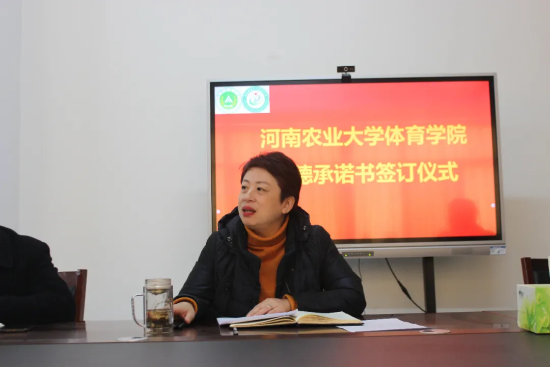 在牡丹园二楼会议室举行师德承诺书签订仪式,学院全体教职工参加了此次活动。仪式由副院长唐大鹏主持。