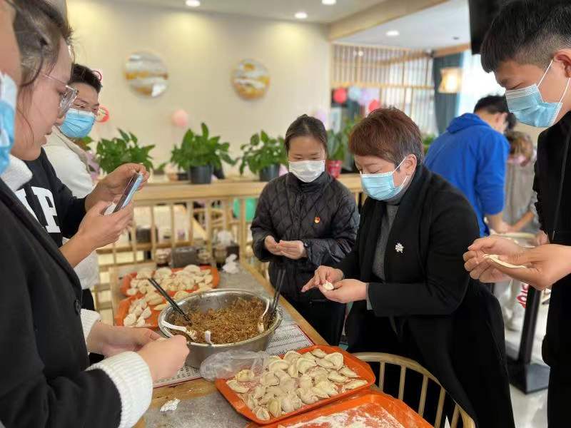 师生们在了解冬至、包饺子、分享饺子的过程中体会劳动的快乐。活动现场,大家洗菜、切菜、剁馅、和面、擀皮……各个忙得不亦乐乎。在有条不紊的分工协作下,大家有说有笑,相互切磋包饺子的技巧,一会儿一盘盘热气腾腾的饺子已经出锅上了桌。师生围坐在一起,共同品尝着亲手包的饺子,现场一片欢声笑语,热闹非凡。