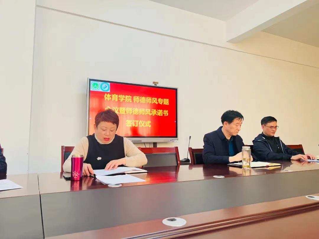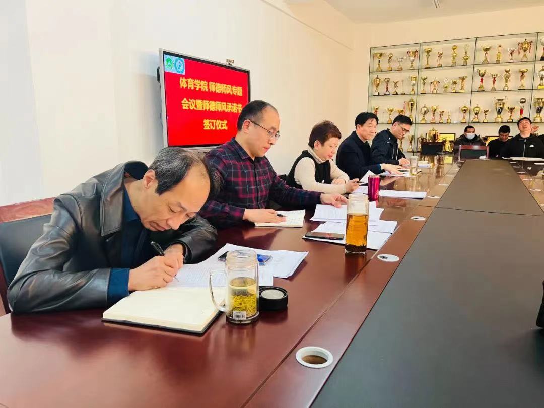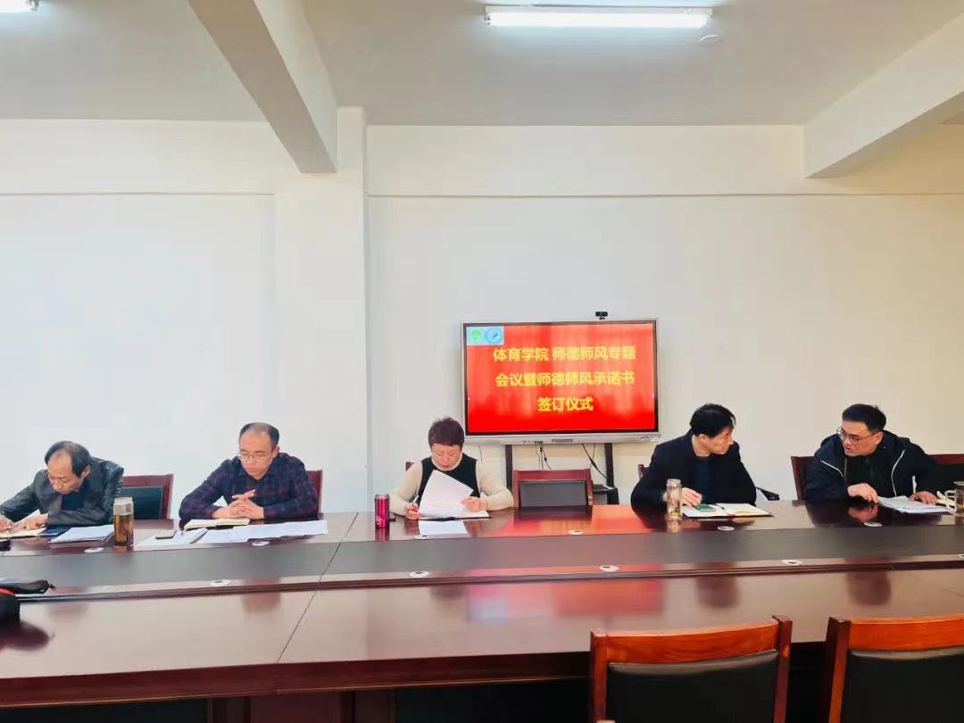 在院会议室举行“扬师德,正师风,知准则,守底线”师德师风专题会议暨师德承诺书签订仪式,全体教职工参加。
