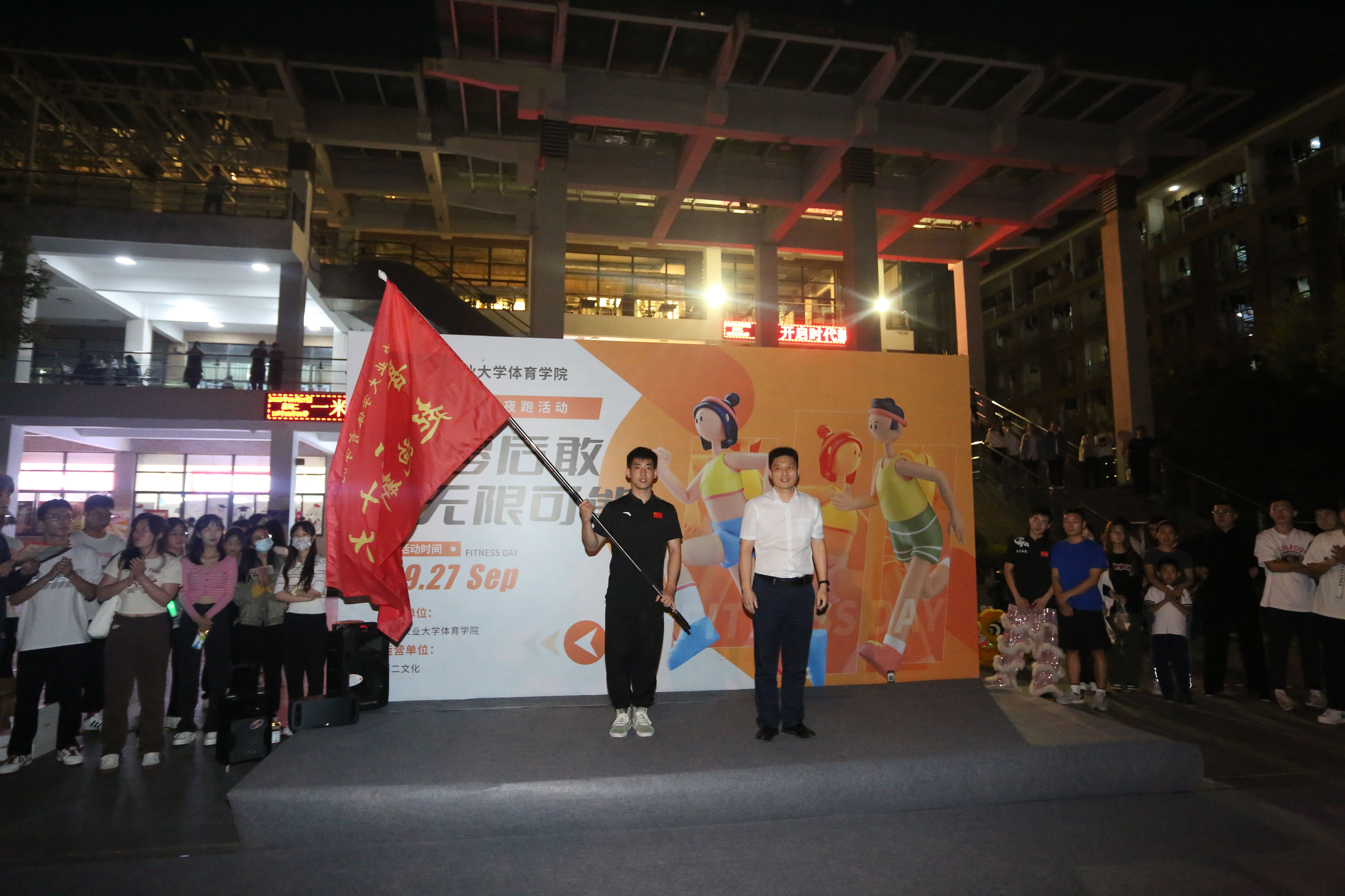 随着一声令下,师生们化身荧光精灵,汇成一条耀眼的银河,点亮整个校园。沿途光影舞动,笑语欢声,一座座雄伟的建筑在师生的奔跑中精彩呈现。篮球场、大礼堂、图书馆、第二工程楼、凯旋门、创新大厦前六个打卡点分别设置了体育知识问答、趣味游戏环节等,健全体魄与富含趣味性的游戏使师生们的身心得到放松,感受到了运动的快乐。