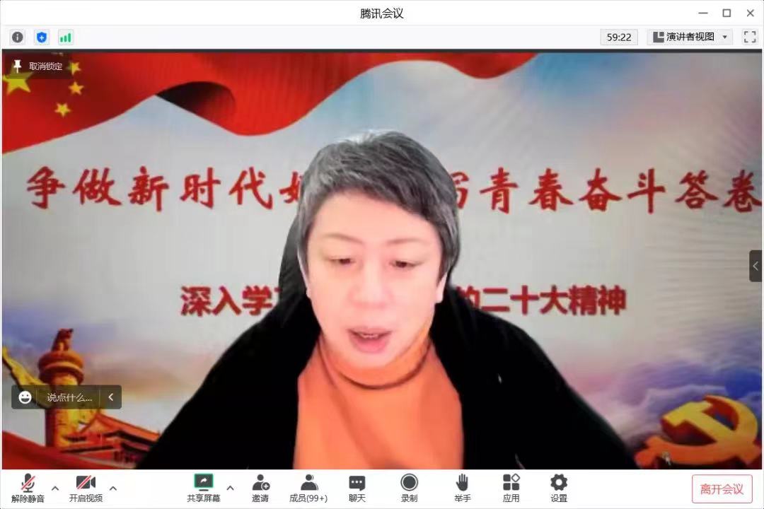 党委书记吴旭静在腾讯会议为体院入党积极分子开展了题为《争做新时代好青年 书写青春奋斗答卷》的专题宣讲。