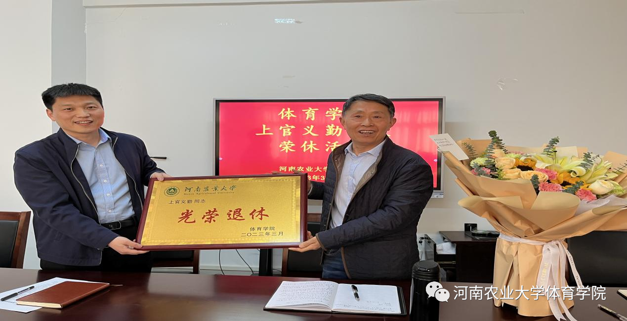 活动由教学副院长唐大鹏主持,他首先介绍了上官义勤教授的工作经历和优秀教学业绩。院长董勇代表学院致辞并为上官义勤教授颁发了荣誉证书并送上献花,表达了诚挚的敬意和祝福。随后,上官义勤教授发表了从教四十年感言。他回忆起在体院工作的点点滴滴,言谈中饱含着爱党爱校的情怀和对教育事业的忠诚与热爱。