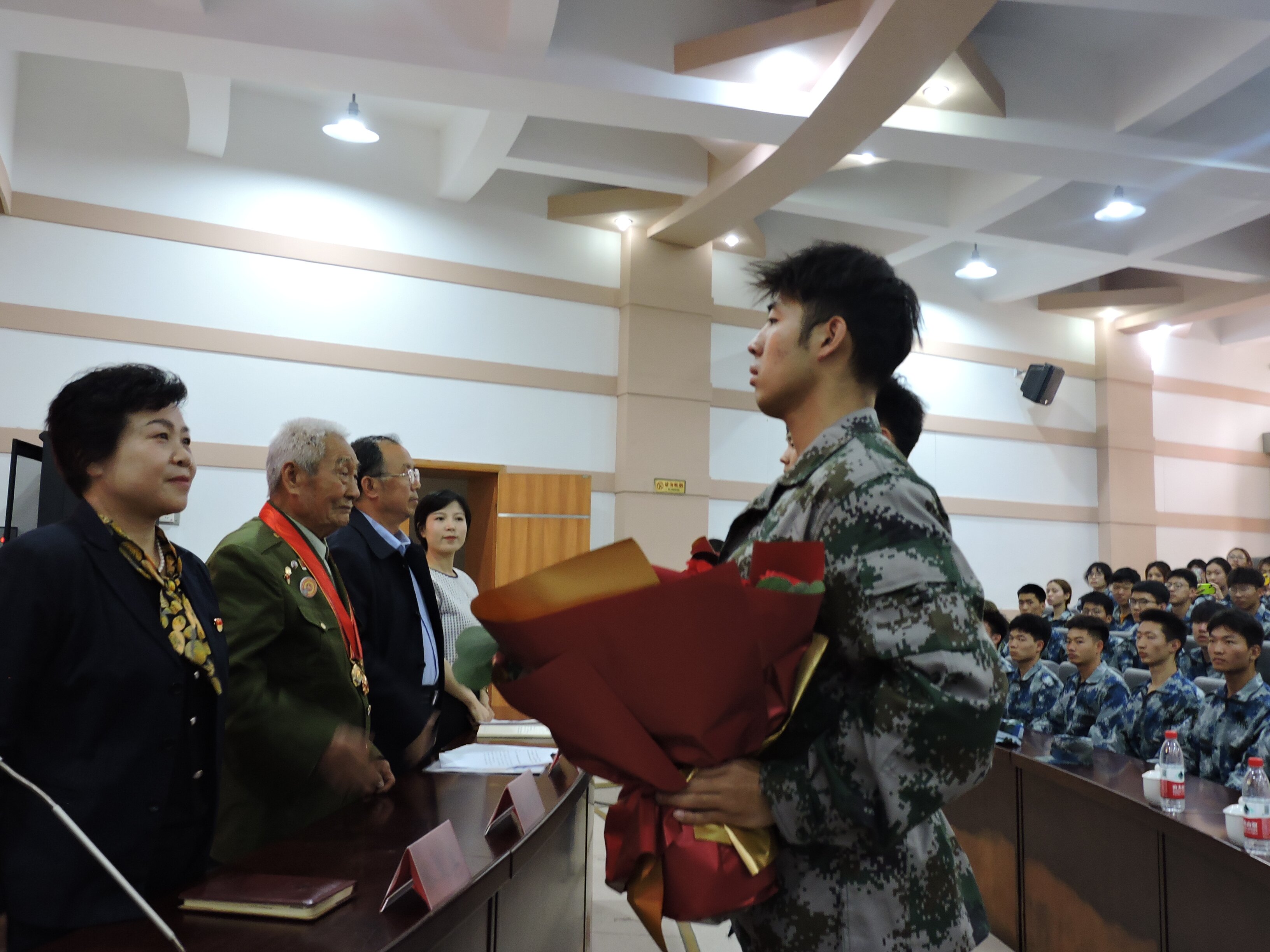活动在《中国人民志愿军战歌》的齐声合唱中拉开序幕,郑州老战士之家创办人、口述战争历史博物馆馆长、宣讲团团长张爱兰首先作宣讲,她介绍了老战士之家创建历程和“三团一馆一队”红色基因传承情况,畅谈了十五年如一日发挥红色资源优势,开展爱国主义的感受和体会,勉励大学生发扬特级英雄杨根思“三个不相信”精神,战胜学习生活中的各种困难,砥砺青春无畏前行,为实现中华民族伟大复兴贡献智慧和力量。活动中,嘟嘟成人网 军训教官代表向宣传团成员及抗美援朝战士献上鲜花,致敬老一辈英雄对国家做出的贡献。