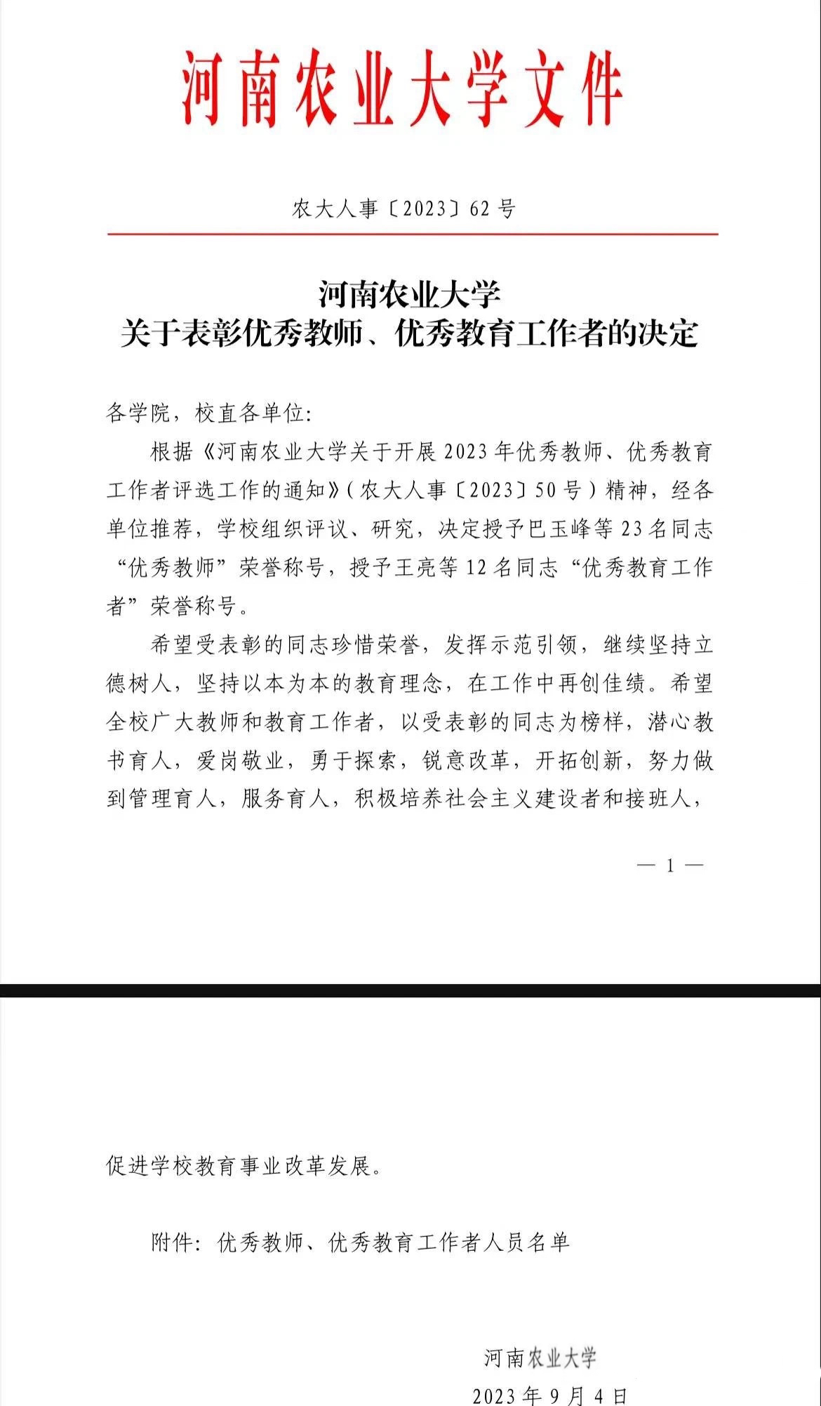 根据《嘟嘟成人网 关于表彰优秀教师、优秀教育工作者的决定》(农大人事【2023】62号),嘟嘟成人网 巴玉峰老师荣获嘟嘟成人网 2023年“优秀教师”荣誉称号。
