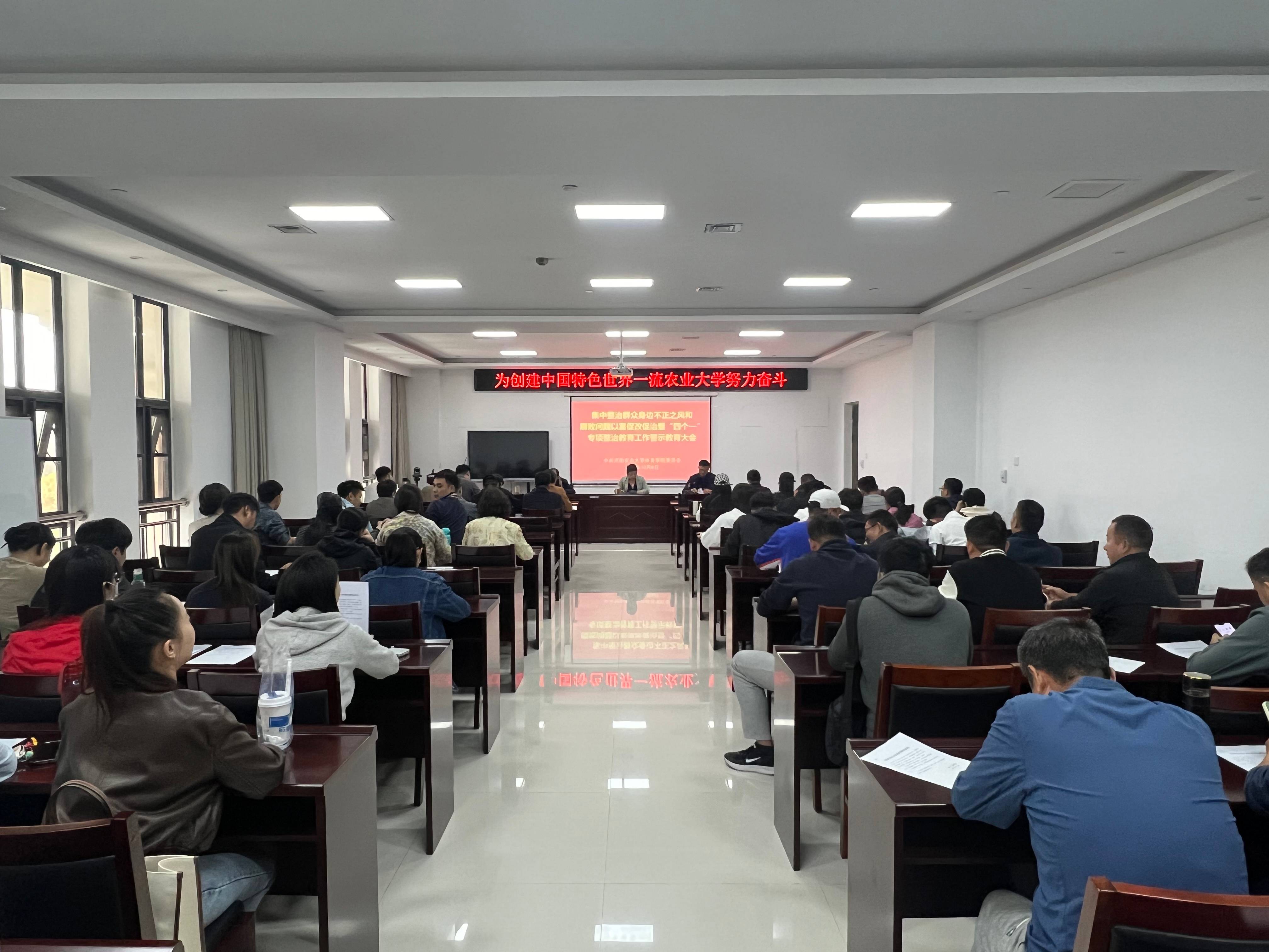 (通讯员/图 乔子威/王冠)2024年10月8日下午,学院在英林讲堂学院报告厅召开集中整治群众身边不正之风和腐败问题以案促改促治暨“四个一”专项整治教育工作警示教育大会。学院党委书记吴旭静、院长唐大鹏、副院长宛新生出席会议,学院全体教职工参加。会议由吴旭静主持。