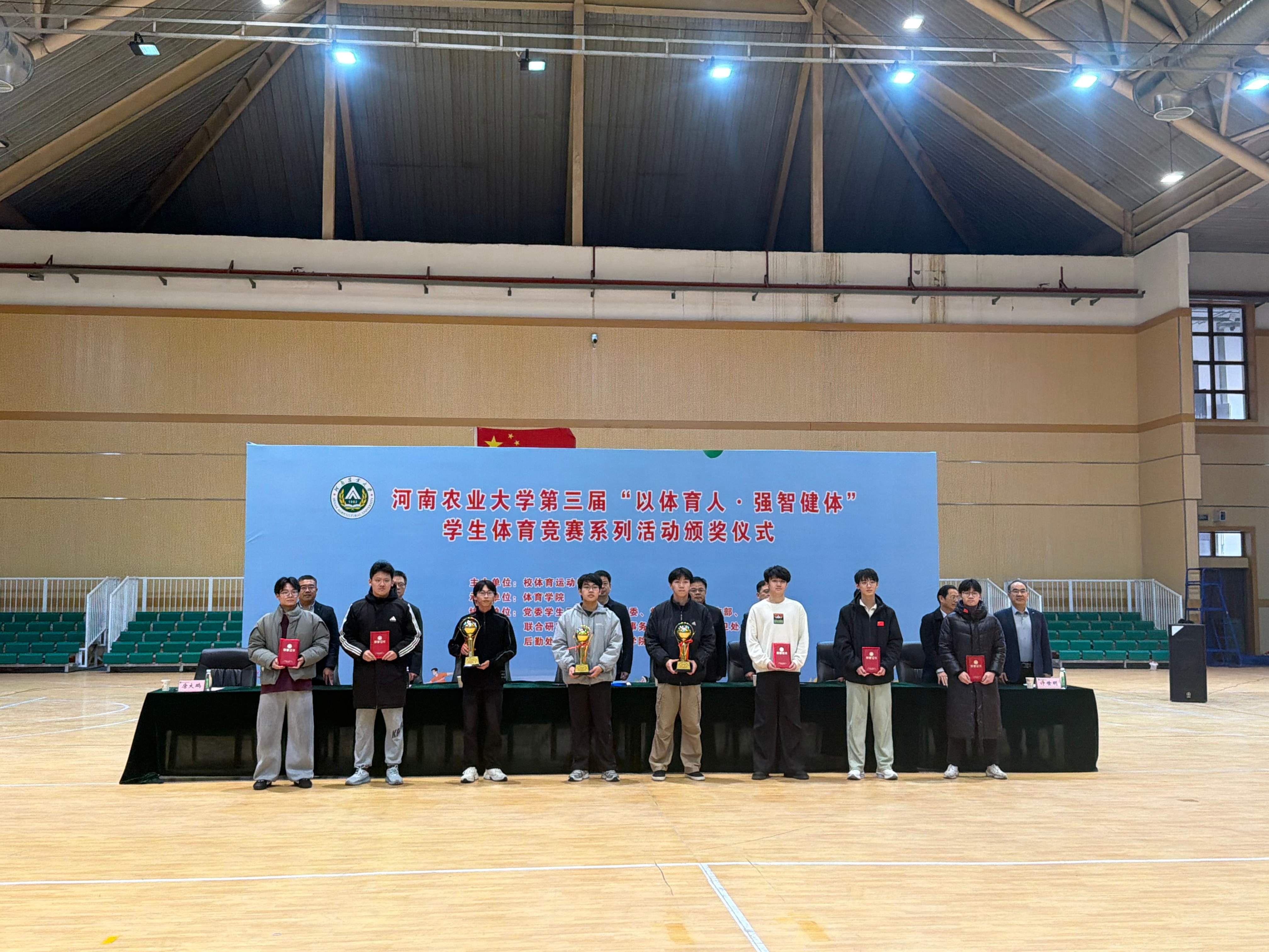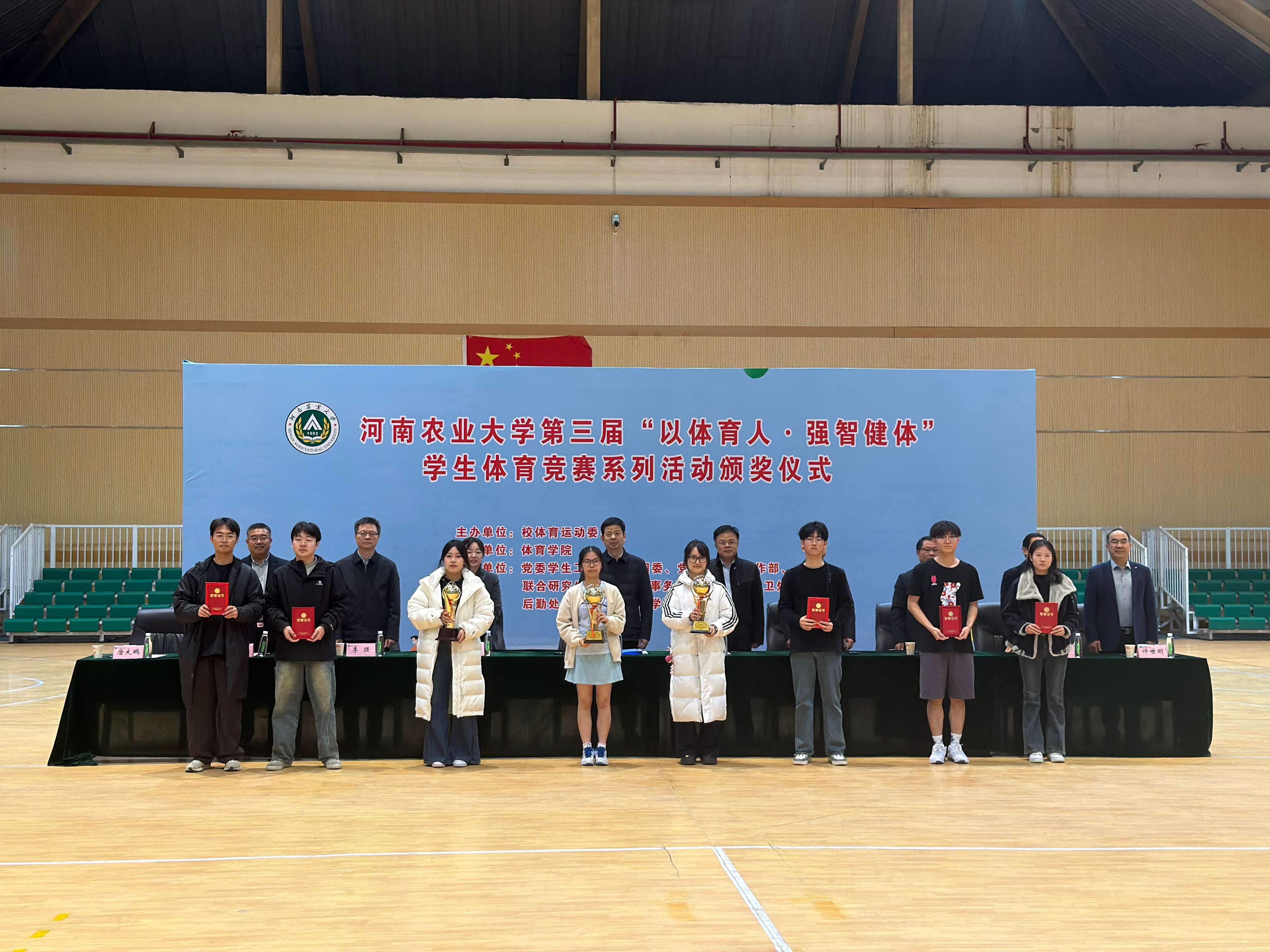 本网讯(通讯员 周少卿)为深入践行“五育并举”育人方针,助力“双一流”创建与高质量人才培养,12月9日下午,学校第三届“以体育人·强智健体”学生体育竞赛系列活动颁奖仪式在体育馆二楼隆重举行。校党委副书记、工会主席邹松涛,校党委学工部、校团委、教务处、嘟嘟成人网 等相关部门负责人出席仪式,仪式由嘟嘟成人网 院长唐大鹏主持。