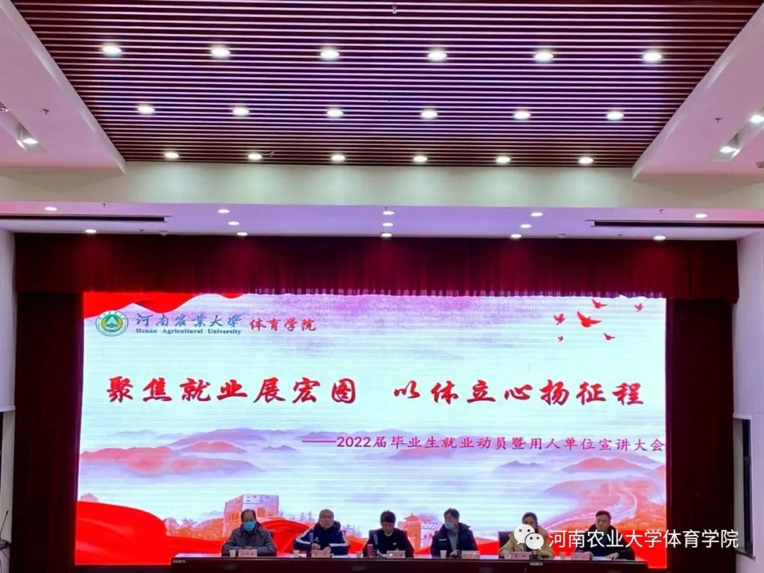 在龙子湖校区繁塔楼AB座大教室一召开2022届毕业生就业动员大会暨用人单位见面会。学院全体领导班子成员,各系主任和2022届全体毕业生参加了会议。会议为毕业生分析了当前就业形势,介绍了毕业生就业政策、实习管理、论文撰写等工作,引导毕业生树立全方位的就业理念。