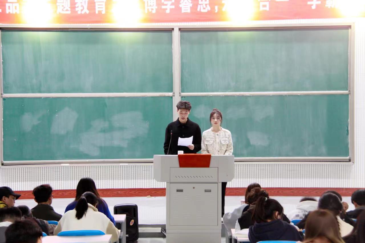 “三品”主题教育之“博学睿思,知行合一”学霸班级评选活动。本次活动由辅导员张予倩、学生会主席张宇龙、魏静冰、职发部部长王宇轩、生保部部长惠珍和艺术团团长陈辉担任评委,21级全部学生和20级部分学生参加。