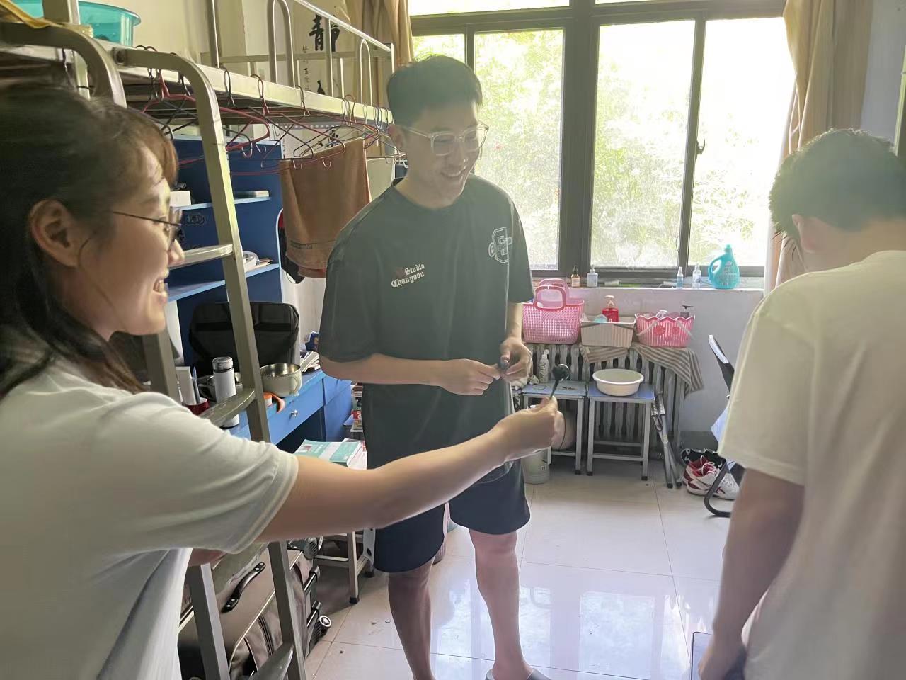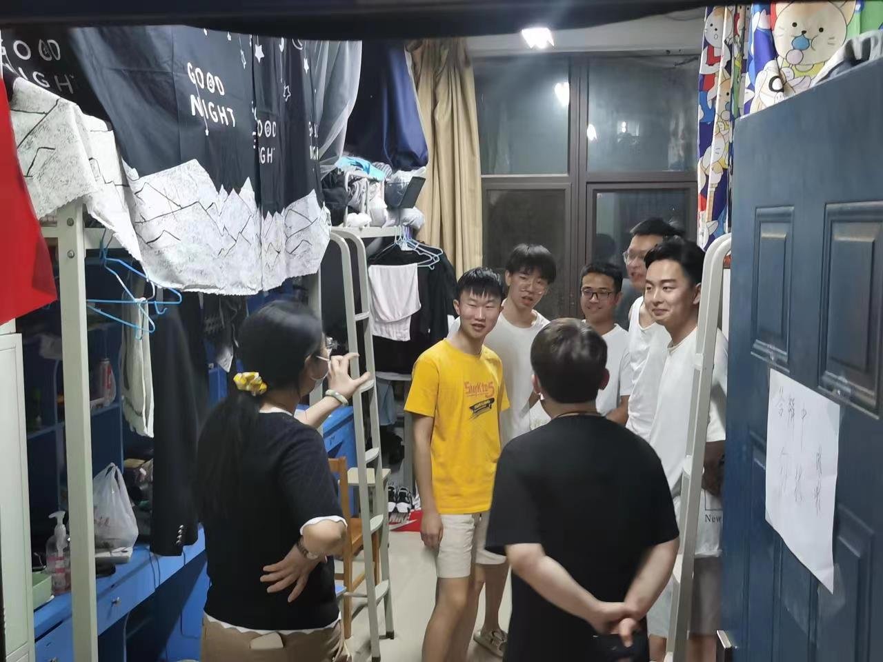 5月22日晚,学院领导与辅导员到宿舍看望慰问毕业生,详细了解毕业生思想生活情况、工作落实情况等。希望同学们在新的人生旅途中,无论是参加工作还是继续深造,都要不断学习新知识,不断丰富自己,在实践中锻炼成长,继续脚踏实地,开创一片属于自己的美好天地。同时叮嘱毕业生们一定要严格遵守学校疫情防控相关规定,站好离校前最后一班岗,确保安全、文明离校,同时真情邀请毕业生常回母校看看。