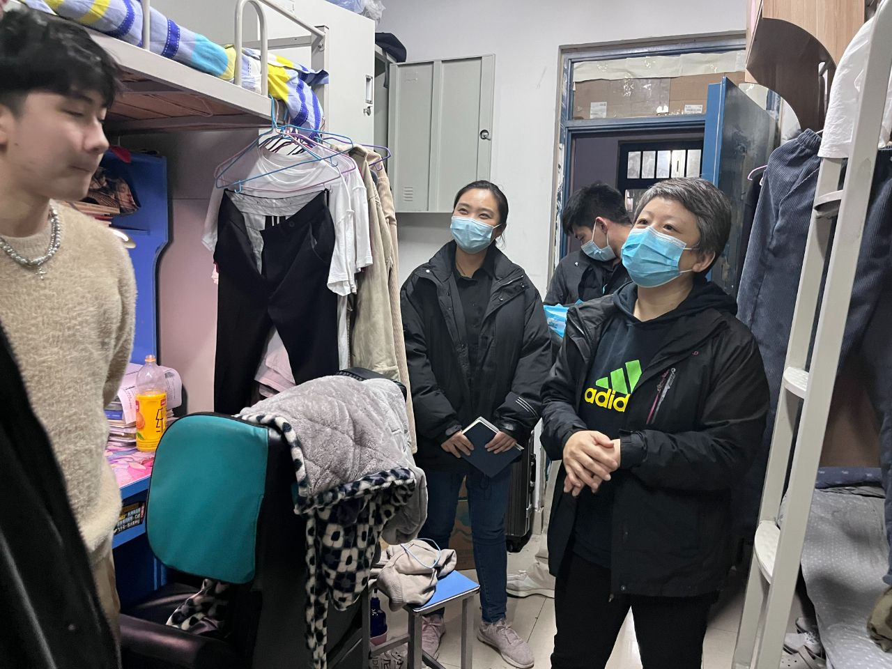 最后,院党委书记吴旭静表示,学院将“以生为本”的理念落深落细,根据学生反映的问题,学院将进行梳理、研究,并向相关部门集中反映,立即行动,尽快落实、尽力解决。她希望,学生代表要主动作为,积极向同学们讲清目前疫情形势和学校疫情防控具体要求,带头做到非必要不离校,共同遵守学校防疫管控要求,共同携手,共担责任,共同筑牢校园疫情防控的防线,确保学校师生平安。座谈会后,党委书记吴旭静和辅导员们深入走访学生宿舍,了解学生思想动态。